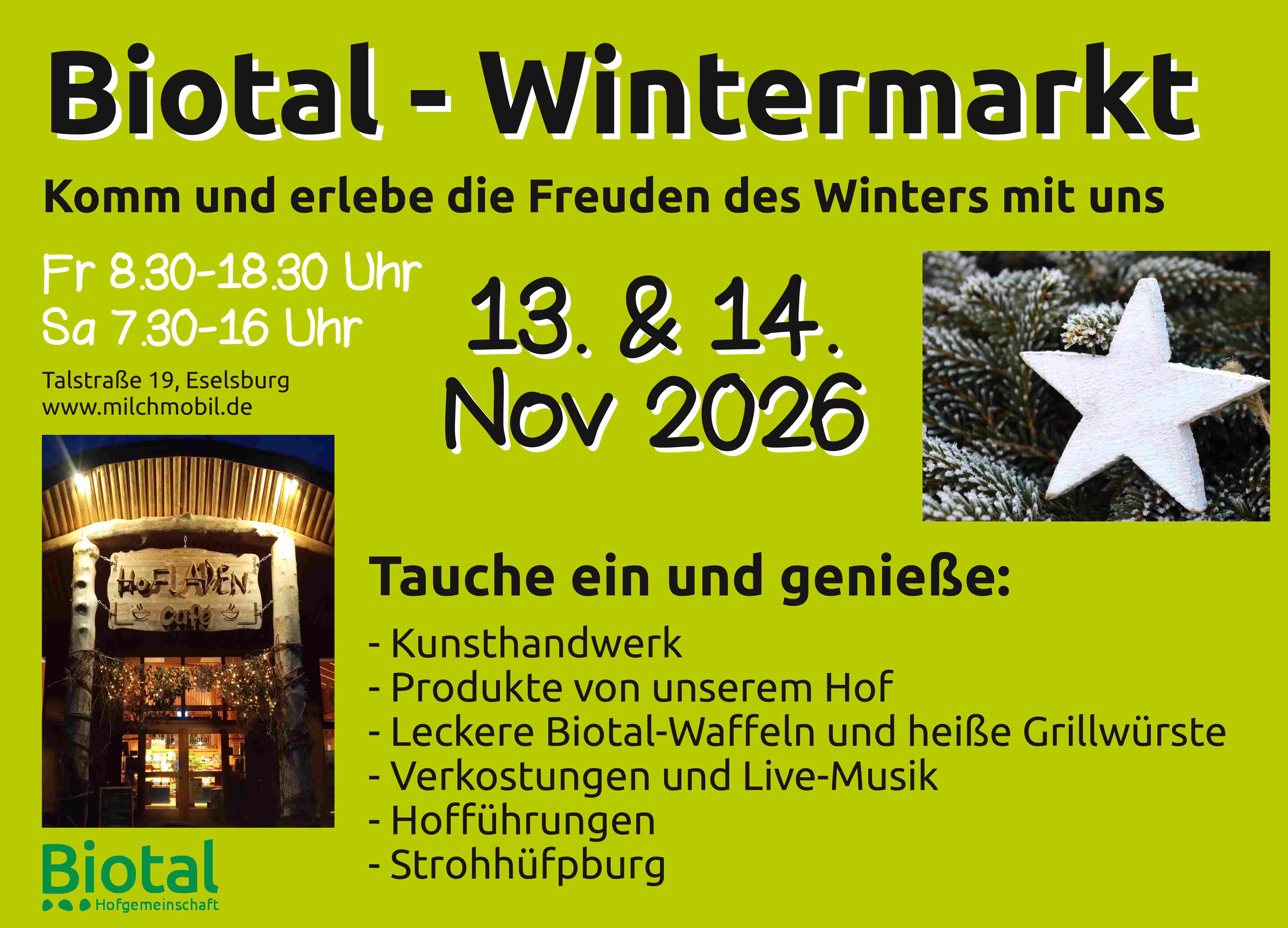 Biotal Hofgemeinschaft: Talstraße 23 89542 Eselsburg Tel. 07324 5805 biotal@milchmobil.de