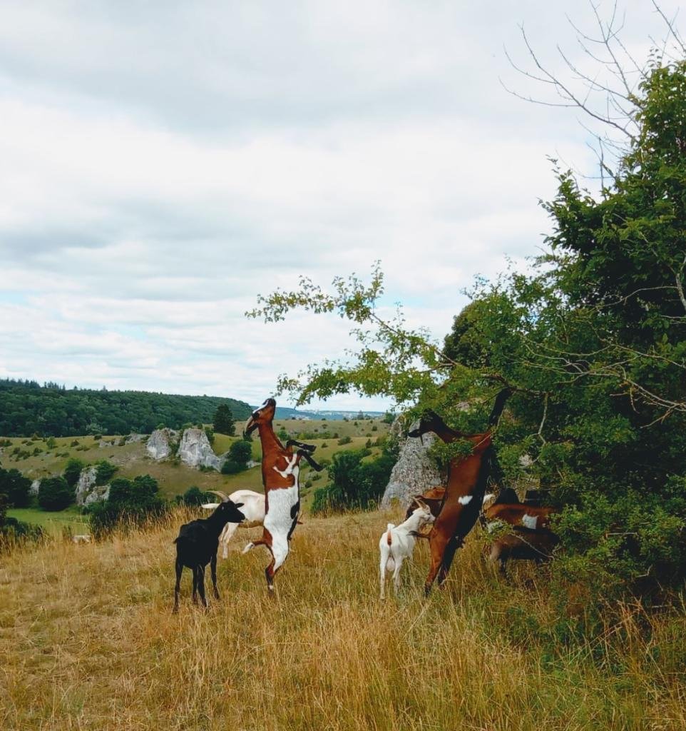 Für den Erhalt der Kulturlandschaft, lassen wir unsere Schafe, Ziegen, Wasserbüffel und Esel im Eselsburger Naturschutzgebiet, z.B. auf den Wacholderheiden, weiden. Im Winter finden Sie bei uns im Stall Schutz und Futter.