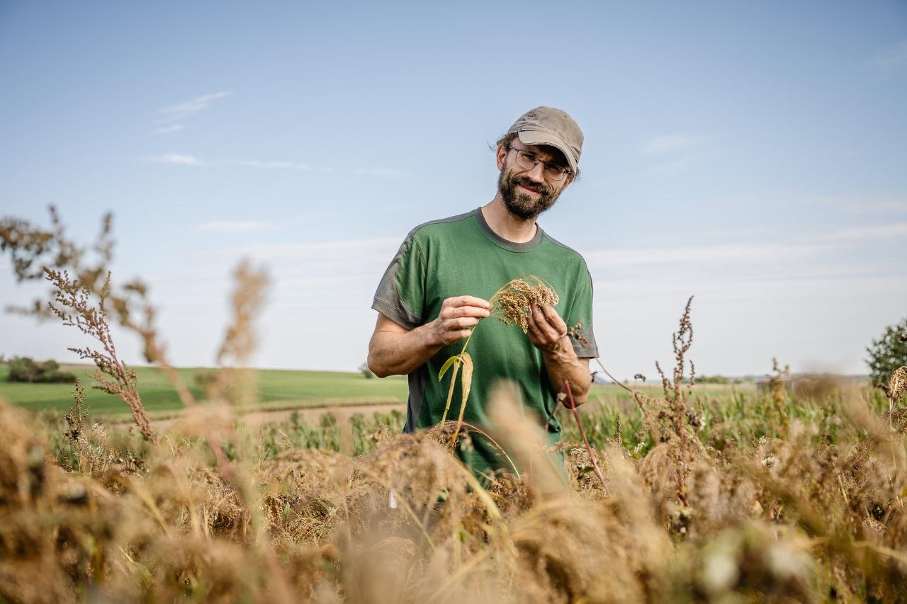 4. Biologische Unkrautbekämpfung: Beikrautbekämpfung ohne Pestizideinsatz. Wir arbeiten sowohl mit „falschem Saatbeet“ (Boden bearbeiten, wie wenn man säen würde. Unkraut wachsen lassen. Entfernen. Und dann erst aussäen.), Radhacke und Hacke, Mulchen und der Beikrautentfernung per Handeinsatz.